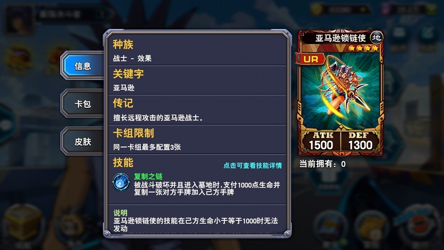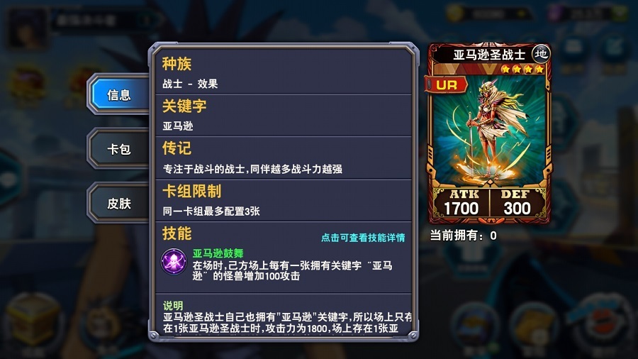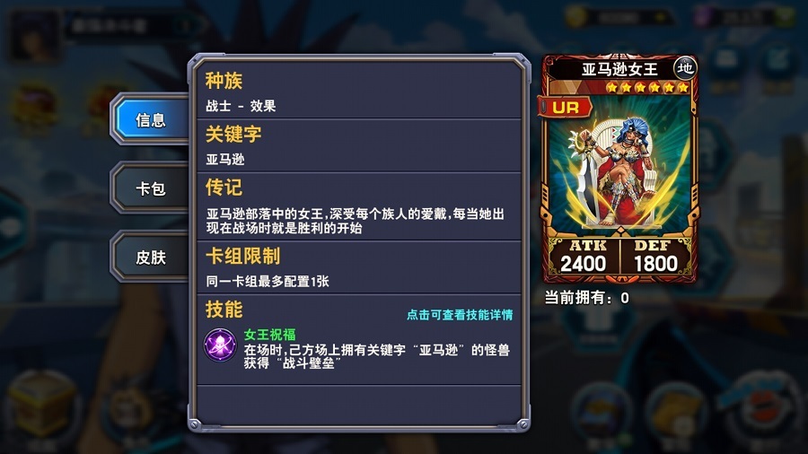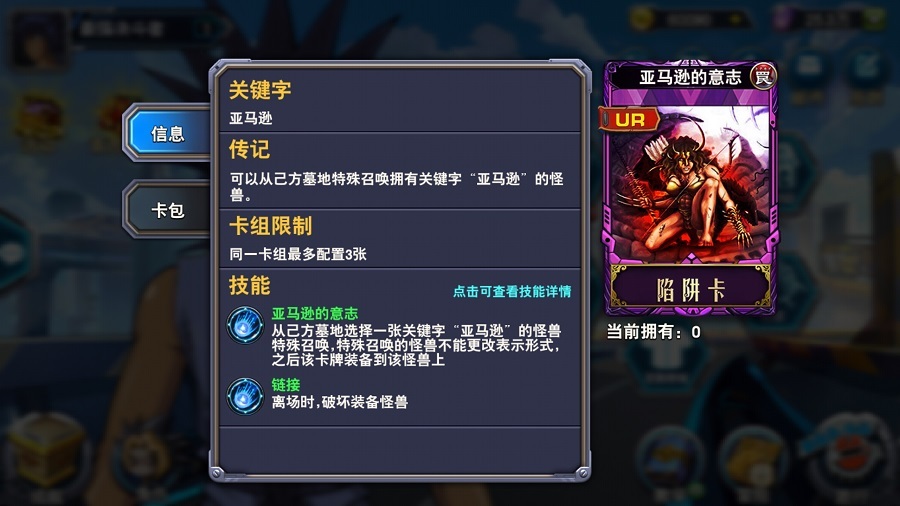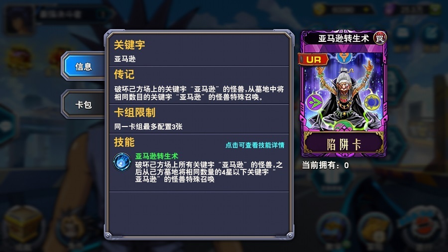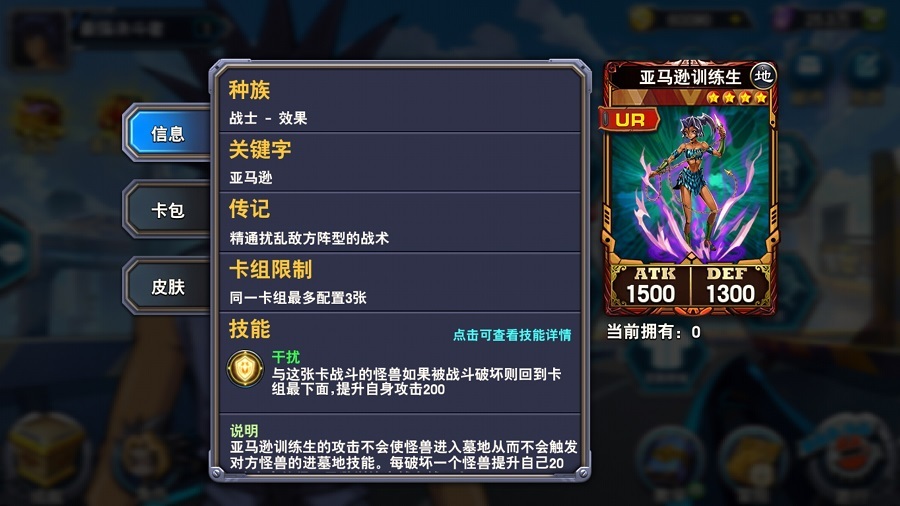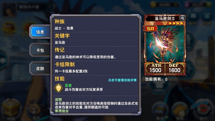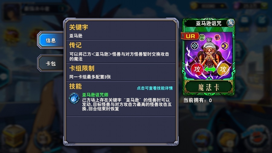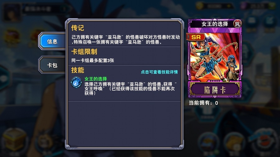 孔雀舞是《决斗之城》的美女决斗者,御姐担当,有着华丽而大胆的决斗风格。 ![]() 她所使用的鸟兽卡组和亚马逊卡组的怪兽也多是各色各样的妹子。 ![]() 鹰身女王 图3 亚马逊圣战士 孔雀舞在竞技场比较强力,每次玩竞技之门我都会尽可能选孔雀舞,并且以亚马逊为主要战斗怪兽,采取速攻策略,基本每次都会在4胜以上。 一、亚马逊卡组的特点 1.单体怪兽效果强: 破魔陷的亚马逊贤者:用来攻击一些一次性、低攻守怪兽,比如魔导科学家、病毒等,可以借此破坏一张魔陷,优势是能破坏一些已发动的魔陷,比如巨大化、过早的埋葬、封锁、人偶、南瓜等,是一张奇卡; ![]() 碰瓷的亚马逊剑士:前期使劲用攻击力高的怪兽,配合亚马逊转生术进行速攻,后期对面召唤强有力怪兽时碰瓷取胜,比如应对白龙卡组和融合卡组这种需要积累手牌,然后瞬间召唤出高攻击力的卡组,往往很有用; ![]() 随亚马逊数量提高攻击力的亚马逊圣战士:这是整个卡组的攻击力担当,能不需装备卡就可提高自身攻击力,虽然提升不多,但足以破坏对方,原本1800攻击力的怪兽; ![]() 破坏添加对手卡牌的亚马逊锁链使:这张卡有利有弊,坏处是削减生命值,好处是能多得一张手牌,运气好能复制到巨大化、羽毛扫这样的关键卡,这样就有一战之力了; ![]() 破连锁的亚马逊训练生:破坏怪兽强制使其回到卡组最下面,并增加自身攻击力,是破连锁和效果牌的绝佳选择,强势克制南瓜、番茄、八爪犬等效果牌; ![]() 亚马逊女王:可以使所有亚马逊族不会被战斗破坏,只要注意魔陷,基本稳赢。最好搭配碰瓷,就算没法破掉对方高级怪兽,每回合削减对面生命值,也是必赢。 ![]() 2.与亚马逊搭配的魔法陷阱多且强 亚马逊诅咒:搭配一只亚马逊怪兽,可以破坏任何攻击力的怪兽,连神卡虚妄预言也能怼掉,是清对方场最厉害的魔法卡; ![]() 亚马逊转生术:相对于让所有亚马逊怪兽重新获得一次攻击或献祭的机会,是亚马逊速攻卡组最强的卡,搭配反冲、粘着的落穴,最快两回合即可取胜; ![]() 亚马逊意志:相当于一张不用支付生命值的过早的埋葬,不能改变攻守的状态,使腕龙的效果无效; ![]() 女王的选择:破坏对方怪兽后可以特殊从卡组中召唤一张亚马逊怪兽,既可以压缩卡组,也是速攻的核心奥义; ![]() 亚马逊弩弓队;使对方攻击怪兽及所有攻击表示的怪兽降低500攻击,而且是永久,相当于既一定程度上保护了己方此次被攻击怪兽,还永久弄残了对面怪兽; ![]() 另外还有战士生还也很有用。 ![]() 3.能高概率遇到一些VIP魔陷卡或效果怪兽 魔陷比如说羽毛扫、巨大化、蝶剑、伊塔库娅暴风、灵魂捕获者等;怪兽比如魔导科学家、腕龙、魔导电子巨人、甘多拉等。 二、卡组组成及作用: 1.怪兽卡:以亚马逊族怪兽为主,当然遇见1800攻击力或1900攻击力的鸟兽族怪兽、苍炎、腕龙也可以选一选。一般是尽可能多的亚马逊圣战士,2张左右碰瓷、训练生、锁链使、圣战士,如果选不到,可以用其他亚马逊族替代。整个卡组须带2-3张上级怪兽,速攻卡组不需要太多的上级怪兽,一是容易卡手,二是孔雀舞卡组整体没什么特别厉害的上级怪兽,没法拼后期。数量的话一般保持怪兽比魔陷多两张。 2.魔陷卡:2张亚马逊诅咒、转生术和女王的选择,后两者是速攻的主流卡,诅咒只是解高级怪兽才用到的,2张足够了。然后带一些反冲、陷坑、封印这种,能帮助速攻的卡,一旦对面出现卡手的情况,能快速压低对面血量,之后利用碰瓷和亚马逊诅咒取胜。另外还需要带2张左右的反击或陷阱干扰以及2张左右的装备卡。整个卡组最大缺点是怪兽攻击力偏低,如果刚开始没能建立优势或者被压制太多,单靠亚马逊诅咒没法逆转。 需要注意的是,在竞技之门中大家或多或少没法将每张卡都选的随自己心意,有些特定卡也只有特定的对手才有,比如说游戏有神反、海马有魔法筒等等,所以玩家要做到对每个角色的卡有何特点做到心中有数。 最后附上亚马逊12胜截图: ![]() |