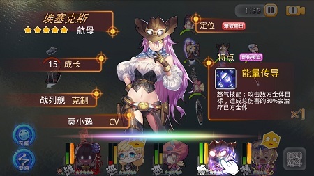 “埃塞克斯”号舰姬一共拥有四个技能,普通攻击【舰载攻击】、怒气技能【能量传导】、自动技能【战场控制】、被动技能【穿透增强】。 普通攻击【舰载攻击】可以召唤飞机对最近的敌方单体目标造成伤害。 怒气技能【能量传导】能够攻击敌方全体目标,造成总伤害的80%会治疗己方全体队友。此技能除了能够对敌方全体战舰造成毁灭性打击以外更可回复己方血量,大大提升了队伍的生存、续航能力。 ![]() 图5:埃塞克斯号舰姬能够对地方造成巨大伤害的同时治疗己方全体队员
