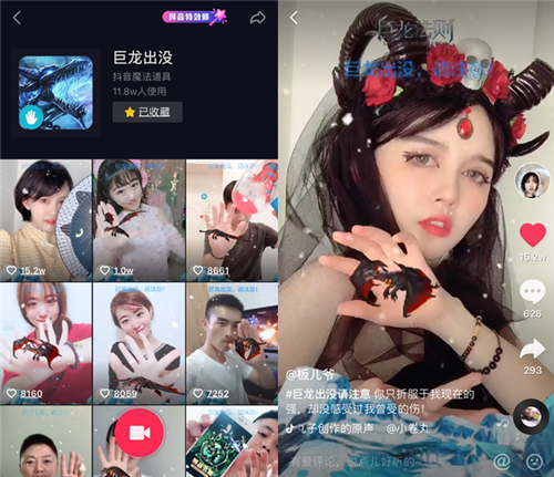 开启即获超高流量,势不可挡 在《巨龙法则》的“#巨龙出没请注意”抖音挑战赛中,开赛第一天便吸引众多抖音达人竞相参与,虽然他们都风格各异,但是创作出来的作品都精彩纷呈。抖音达人“自由”以漫画的形式演绎的巨龙故事非常的引人注目,生命巨龙女王的形象深入人心;而拥有千万粉丝的“蔡萝莉”通过自己的方式,舞蹈加巨龙贴纸的完美结合,吸引了大批粉丝点赞。除了抖音达人外,其他抖音用户也是脑洞大开,拍出了许多高赞高质量的作品。