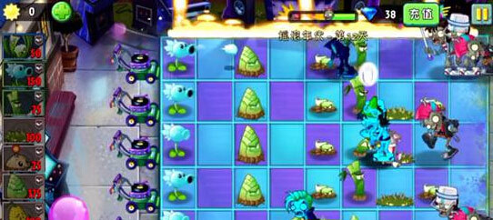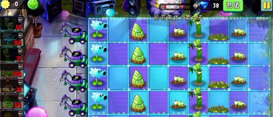小伙伴们可能不明白为什么要用竹笋,其实小编也是抱着试一试的态度,结果发现效果还是非常不错的,不容易被吃掉,一条线的AOE攻击方式对付成群僵尸很有效,并且伤害也不错。