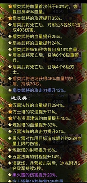 那些年我们一起打的比赛——《君临天下》争霸赛精彩盘点 诸位主公大家好!这次为大家带来的是深受海外华人推崇的中国题材策略手游《君临天下》第三届世界争霸赛-地区争霸赛8进4之战的——神之雷宋宋 与 诸神之怒大陈陈之间的一场对决(请大声朗读这段话来证明你的肺活量)! 进攻方是诸神之怒大陈陈(后简称:大陈陈),防守方是神之雷宋宋(后简称:雷宋宋)。 首先简单介绍下进攻方大陈陈的进攻配置: 级别:104级 武将为:诸葛亮、偃师月英、曹操、貂蝉。 兵种为:9刀盾 10木牛25弓骑4战象3摸金校尉1虎豹骑16方士2太平道人3青囊。 配合的金宝为:两个七星续命灯,一个乌戈古藤甲,一个豹筋铁胎弓,一个南华真经,一个太平经。 再简单介绍下防守方雷宋宋的防守配置: 级别:120级 武将为:诸葛亮、偃师月英、张飞、虎痴许褚 配合的金宝属性截图: