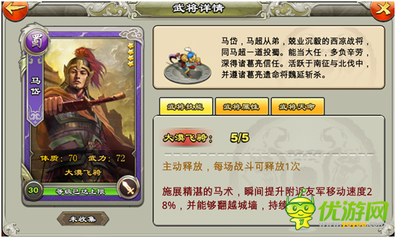 马岱:4星第二bug,提高友军速度并且可以翻墙已然变态,作为一个城墙比地板还厚的游戏,有了这个技能简直神技!无需赘述 满级激活马超庞德天命! 星级指数:4星半