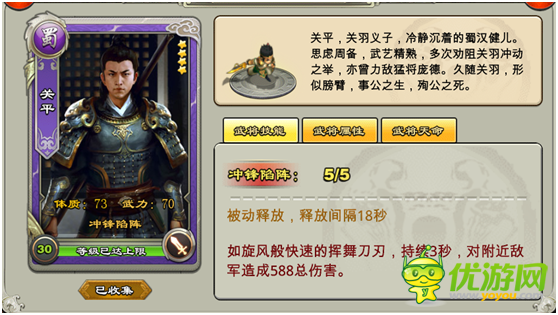 在君临天下中部分的玩家都是非R或者月卡党那么这就注定了开头的4星武将。那么培养那些好四星武将好呢?今天小编为大家带来君临天下四星武将培养推荐!! 【君临天下四星武将培养推荐】 关平:作为系统送的武将,游戏里的第一BUG,技能冲锋陷阵简直是个BUG,技能发动后化身为龙卷风碰到5星以下武将对面必跪,没有例外!而作为被动技能一场战斗可以使出2、3次,简直大招!此武将可一直用到4个位置都换成5星为止。 星级:5星推荐!!!