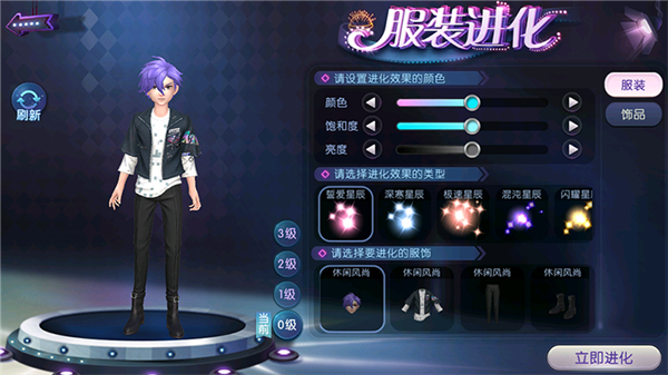 男款则采用了舒适外套搭配修身长裤,英姿帅气,星耀紫发色搭配日系发型,撕漫男形象展露无遗。本次【休闲风尚】的新表情瞳色为星眸印象色系列,男生新表情的瞳色为浅艾绿,忧郁冷漠;女生新表情的瞳色为沁爽蓝,淡雅迷人。