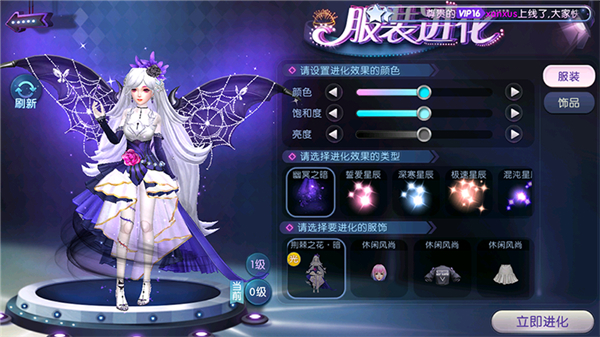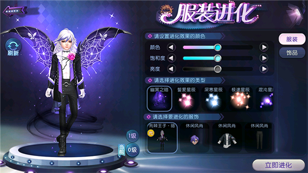 而男款新蛋装【荆棘王子·夜】以挑染发色搭配圆珠形耳环,邪魅狂狷,红色花朵胸饰结合西服套装,现代风与哥特风完美结合。两者的翅膀背饰【沉默之翼】采用紫色蝙蝠仿生羽翼,正面结满了蛛网,随着蝴蝶纷飞,恶魔假面缓缓显露。