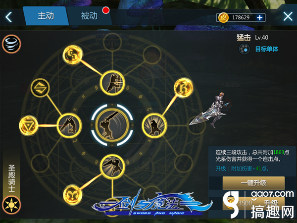 【技能:狂风剑士&圣殿骑士】 战士作为团队中的急先锋,血厚防高,能攻能守,是不可或缺的铜墙铁壁。 通过30级转职可以获得“狂风剑士”和“圣殿骑士”两套技能。两套技能中,主动技能的攻击方式相同,但每个主动技能都配有3个符文,而两套技能的符文大相径庭,因此佩带符文后技能效果就不同了。