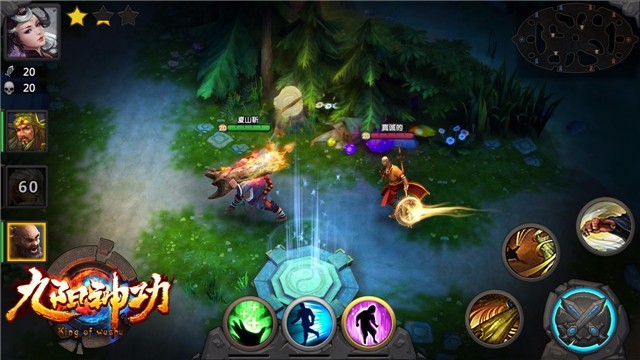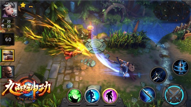 【个性英雄 激斗沙场】 九阳神功设计了众多不同题材不同风格的英雄供玩家选择,历史名人、三国名将、绿林好汉、甚至喜闻乐见的趣味人物都可以上场厮杀,一决高下。如果玩家钟情神话题材,可以选择孙大圣腾云驾雾;如果热爱三国文化,则可邀约关二爷或者吕布征战沙场;如果爱打抱不平,那么鲁智深就是最好的选择,除此之外还有诸如韩梅梅、桂小宝这样的趣味英雄供玩家选择。同时九阳神功会根据英雄的特色塑造出贴合英雄个性的技能,如吕布矫勇善战、鲁智深刚猛霸气、萝莉的鬼魅娇艳等等,每位玩家都可以在这里找到自己喜爱的英雄去战斗。不同类型英雄的组合有着不同的对战效果,根据战术战略组合搭配,玩家可以打造出属于自己团队的个性阵容和战术体系。
