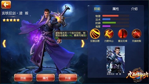 玩家完成新手引导任务后,便可兑换玄铁狂剑·凌叛。其在游戏中被定位为团控型近战输出英雄,全面的属性成长,让使用凌叛的玩家,在战斗后期,可以灵活转变出装路线,若是己方在团战中没有足够的肉盾屏障,有针对性地出一些防御装备,在一定程度上,凌叛可以起到坦克的作用,若是己方在团战中不能打出足够的输出伤害,玩家可以装备一些提升攻击力的装备,在合适地时机切入战场,可以与敌方战士正面肉搏,亦可黏住对方关键输出,减少其火力支援能力。接下来,我们来了解下凌叛的几大技能。 【狂傲剑意】(被动) 凌叛每杀死一个敌方目标,物理攻击提高0.1%,最高可增加25%。