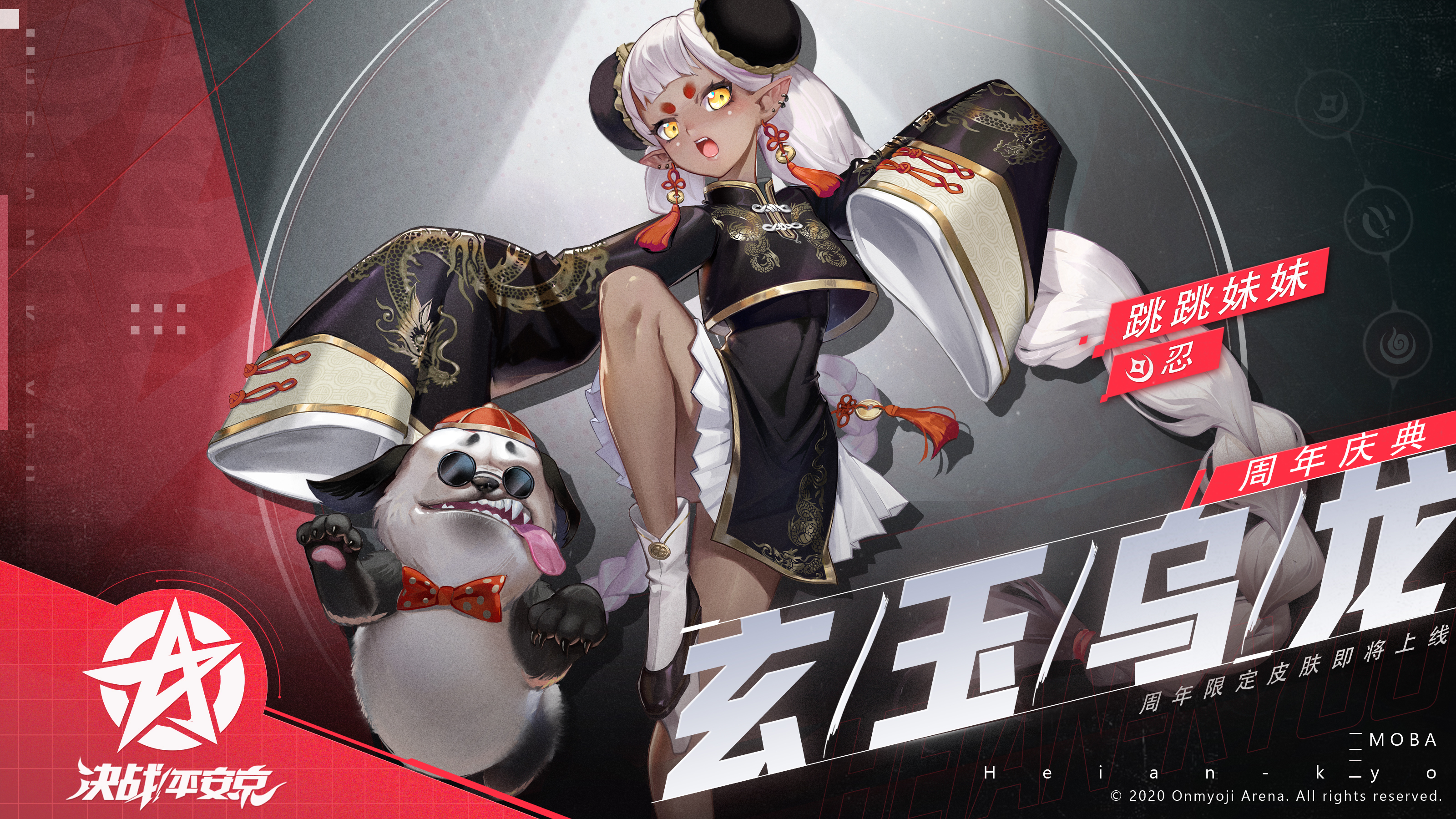 2020年12月31日维护后-2021年1月31日活动期间,大人们还可前往抖音搜索“平安京”参与作品征集,更有机会抽取跳跳妹妹三周年纪念皮肤「玄玉乌龙」!