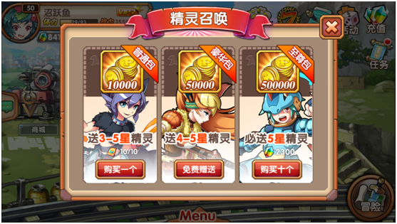 5.增加精灵召唤最低保障 精灵召唤最低保障哦,每天一次4星或5星精灵的免费召唤哦,轻轻一点精灵到手~,万一出了5星就是赚到啦~,相信每天一次召唤总能抽到我们心仪的精灵的!