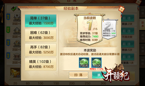 以上就是经验副本的介绍,这个副本的还是非常简单的,因为都有特权加成,小编建议大家在充值特权后再进行挑战,让您的经验领先他人一步。