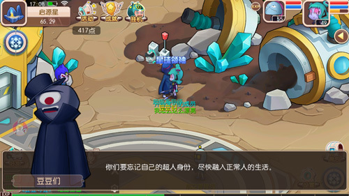 启源星的星球领袖是豆豆们,玩家如果被分配到启源星就需要帮助星球领袖完成任务维护星球和平。启源星的明星超人是此前出现的反派的角色广告超人(邪恶超人),在游戏中后期玩家在主线任务可以领略广告超人的厉害。 同时启源星也有属于自己的启源星超人豆豆,自从被沙怪打败后就失去了超人的信念,去做了清洁工、送水工、编剧、演员、收银员。但之后开心超人帮他找回了超人的信念,重新振作。豆豆一共有五个,分别为红豆豆、绿豆豆、蓝豆豆、青豆豆、紫豆豆,他们还能合体。 |