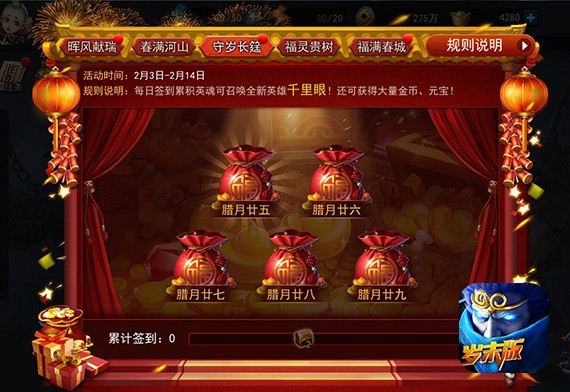 广发福利庆猴年,千万红包闹新春 从2月3日起,《乱斗西游2》新春贺岁版推出“金猴贺岁”春节福利活动。每天参与守岁长筵活动,签到拿全新英雄千里眼;年关将近,不忘帮派福灵贵树大祈愿,更有丰厚奖励回馈玩家;过年怎么少得了新鞋子?使用岁华结在春满河山活动中可兑换金鞋子和全新四星英雄野火冥王、黄眉老佛,更能将金鞋子升级为橙色鞋子!想一睹真容,马上参与春节福利活动!