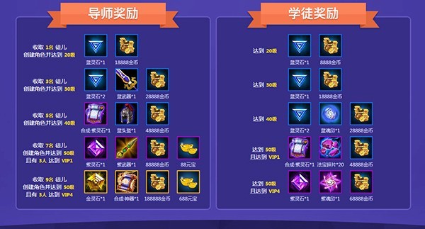 而在游戏内,《乱斗西游2》也为各位导师和学徒准备了紫灵石、紫魂印、金灵石、海量金币和元宝等丰厚奖励。欢迎各位玩家积极参与活动,赢取自己的导师/学徒福利! 参与方式:凡游戏角色等级 ≥ 50级的《乱斗西游2》玩家,可生成自己专属的导师邀请码。将其发送给好友并邀请他注册账号进入游戏,待他输入导师邀请码后便可将他收为学徒!只有2月3日后建立的新角色,等级小于10级的玩家才可拜师上道哦!温馨提示,上述活动目前仅限安卓服务器参与。