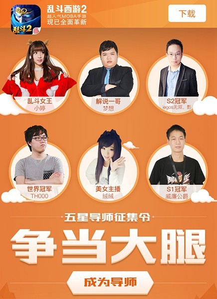 还在看着高玩的教学视频进行学习?还在依循攻略的操作指引苦练技艺?那为什么不找一位技术好颜值高的五星导师,让ta手把手带你装逼带你飞?! 全面革新的网易超人气MOBA手游《乱斗西游2》,自昨天发布五星导师招募令以来,美女解说小婷、WCG&IET电竞世界冠军TH000、人气主播绒绒和超级联赛S1冠军威廉公爵在内的一众顶尖高手迅速加盟,项目上线仅1天时间,几位明星导师门下学徒已全部爆满——从今以后,只要抱着导师们的大腿,就可以尽情驰骋乱斗战场了!