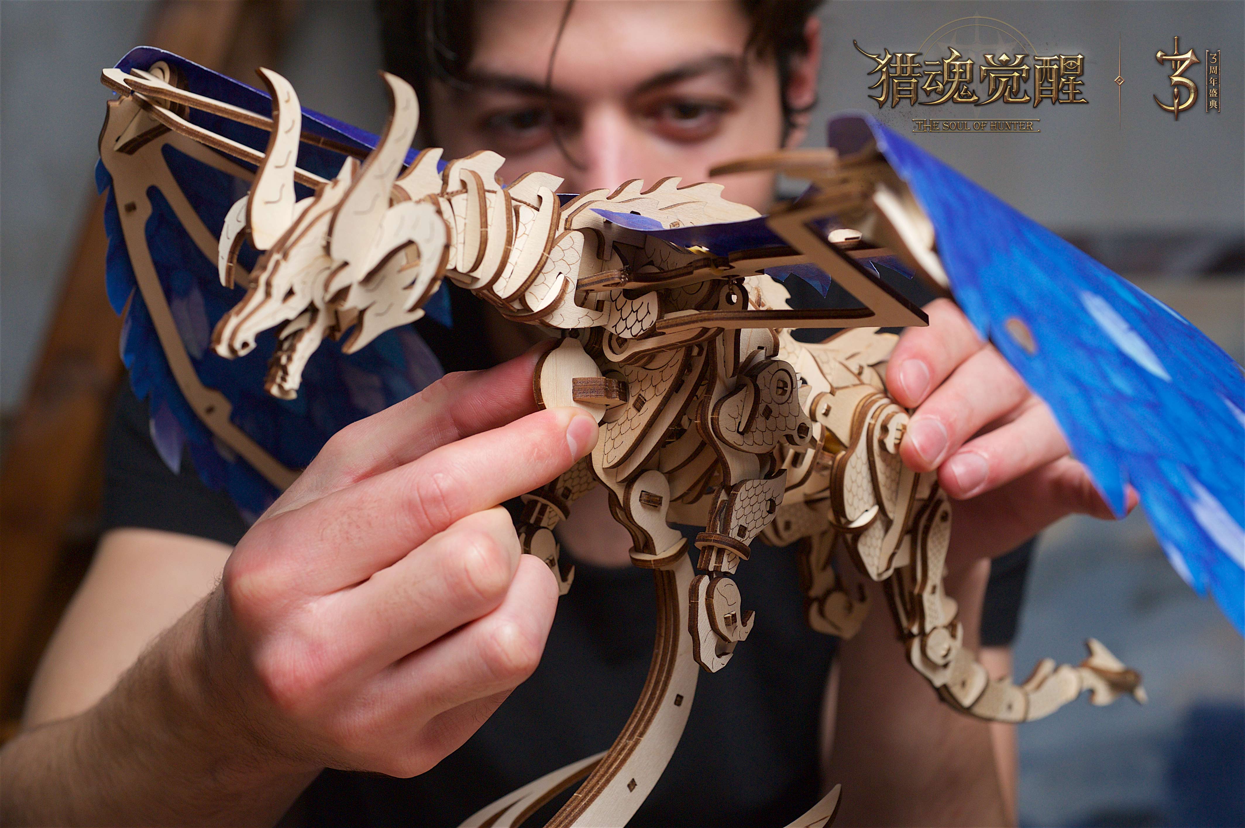 猎魂觉醒联手国际一流木制机械玩具品牌UGEARS历时一年,研究开发首款以苍龙为原型的木质机械传动模型。