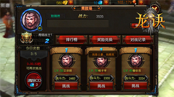《龙诀》中的PVP主要分为竞技场和多人PK两大板块。竞技场全天开放,每日5次挑战机会(可消耗少量钻石增加次数),通过不断的挑战,可以提升自己的排名。