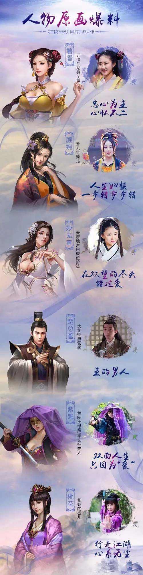 由张含韵、彭冠英、陈奕等领衔主演的纯爱虐心古装大戏《兰陵王妃》正在湖南卫视钻石独播剧场的开播啦,大家是否为剧中一众美女帅哥的形象迷倒? 终于不用再傻傻看着偶像剧里千篇一律的网红脸了!影视新星张含韵、彭冠英、陈奕的联袂演出,用颜值和演技,实力碾压当期很多热播剧,匠心的制作,精彩的剧情,加上穿梭于爱恨、欲望之间的传奇故事,也让这部戏在瞬息间,征服了一票观众的心!CSM数据显示,该剧自上映以来,收视一直稳坐电视剧榜单前三! 当然,在电视剧热播之际,我们也知悉,由指点传媒游乐平台发行的同名手游亦在有条不紊的测试中,预期手游于12月上线。据了解,在改编的大型3D、ARPG历史玄幻题材手游《兰陵王妃》里,你将看到一如邻家少女般的桃花,老谋深算的紫魅,痴情怨女颜宛,还有忠心护主也惺惺相惜的璧人碧香、楚总管,在耐心等待手游上线的日子里,不妨让我们先放几张角色原画,给大伙舔舔屏吧! ![]() 哈哈,你一定会说,为什么没有自己心心念念的元清锁、宇文邕、高长恭,不要着急,不要着急,这不过是第一波预热嘛~ 当然,点点在这里更想说的是:我们深知大家等待的辛苦!为了感谢大家,烦请大家务必关注我们的“兰陵王妃正版手游”官微或“兰陵王妃手游”官博。 在这个寒气袭人的冬日,就让我们3天一次、高密度、狠狠任性的活动,温(Za)暖(Yun)你整个冬日吧~ 剧透剧透剧透,明日,也即12月2日10点30分,我们的第一次官博有奖转发活动,想要YSL星辰、欧舒丹手霜的mm,还不带上你的他,关注分享我们的活动~ 兰陵王妃手游,这个冬天,因你,更温暖! |
