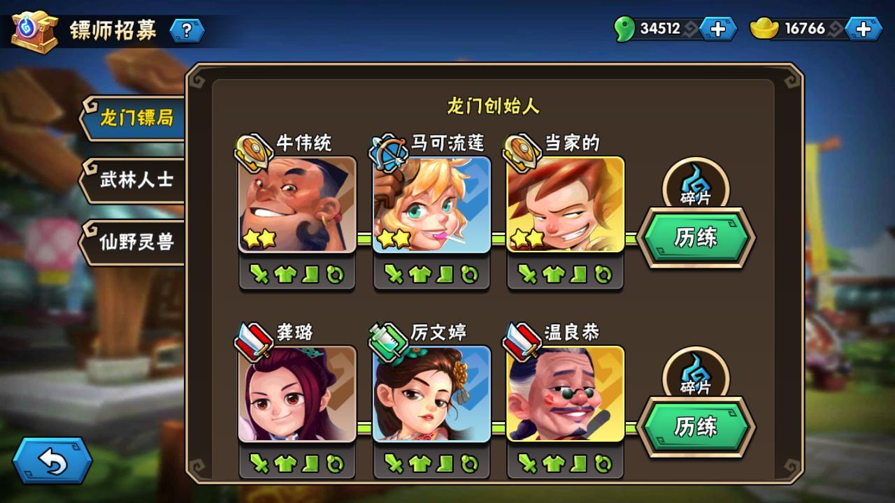 押镖路上路途遥远,险象环生,一位镖师怎么够用?小编今天来为大家讲解镖师招募办法,玩家如何解封及历练镖师。 镖师招募 进入游戏主界面后,点击右下角【招募】图标。即可进入镖师招募界面。在这里面,可以清楚的看到镖师的三种分类,龙门镖局、武林人士、仙灵野兽。