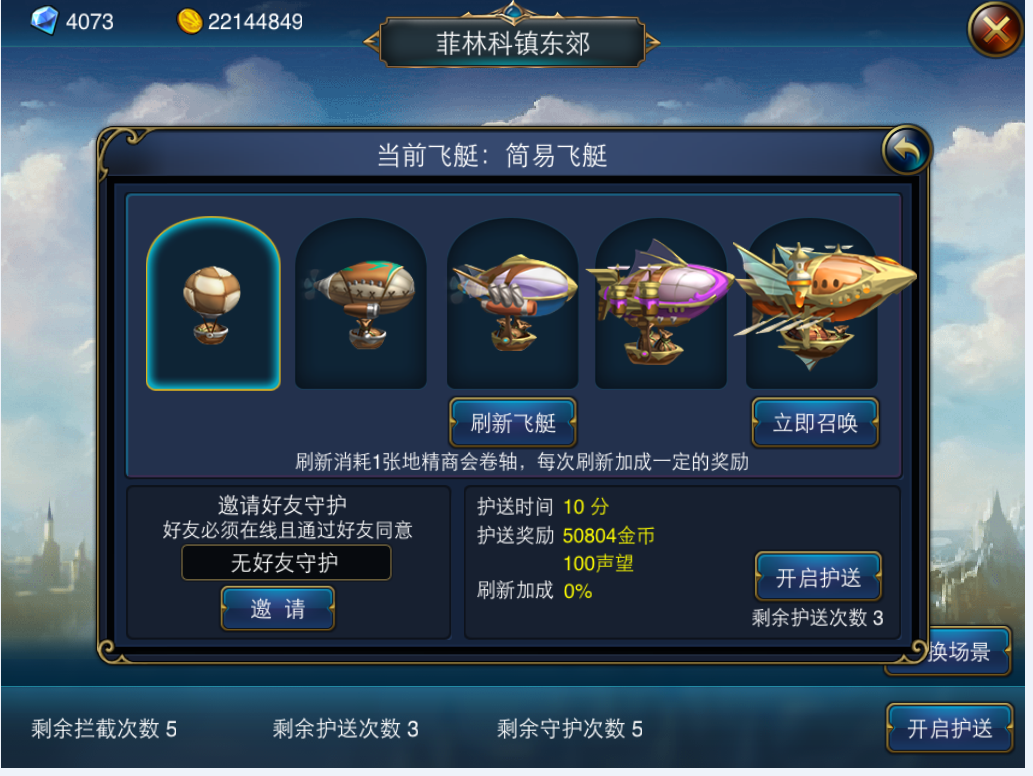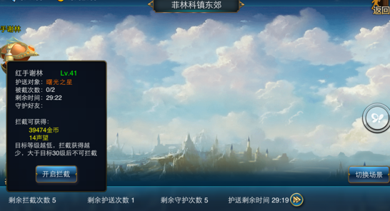 拦截飞艇:每艘飞艇最高可被拦截2次,在护送飞艇的过程中如果被其他玩家拦截成功,对方即可获得一定量的金币和声望奖励。