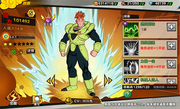 小编一直为16号的牺牲而感到可惜,不过令我高兴的是,16号在《龙珠Z》的最新手游《龙珠觉醒》中正式“复活”,以最顶级稀有度的形象出现在了玩家面前!这款游戏的制作组一直在强调还原度,他们对16号的还原也是非常到位,不仅是稀有度最高,更是少见的近战防御系角色,足以体现他的与众不同。