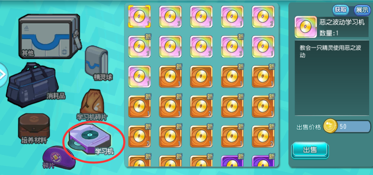 选中技能后点击获取,即可学习技能,如果技能已经满了,那就需要选择替换的技能哦。另外需要注意的是,学习机学习的技能是无法进行回忆的,还请训练师们留意哦。 |