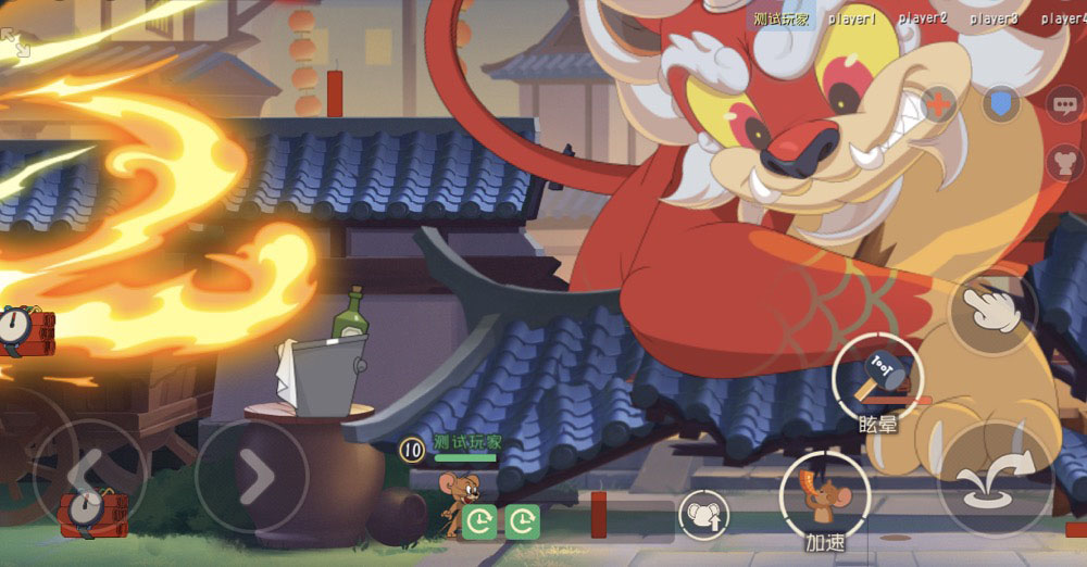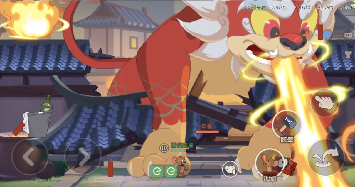 通关BOSS,榜上有名! 5位小伙伴一起联手对抗在庭院中的神秘BOSS,将BOSS击杀则为胜利,但如果5位在场成员同时虚弱或是时间结束还未将神秘怪兽收服将判定为失败。 在春节大作战中,大家选取角色时没有限制,可以自由选择猫咪或者老鼠,而且出场就是满级状态。在游戏中小伙伴们不仅能够使用场上的道具攻击神秘怪兽,自身的技能和猫咪的爪击都能对其造成伤害。 但狂暴的BOSS自然也不会示弱,它会发动技能攻击在场的小伙伴们,神秘招式不仅伤害不俗而且不易闪躲,大家可要小心了。 通关高级难度的玩家将有机会进入竞速排行榜,通过高级难度的玩家在活动结束后将获得通关称号,排行榜中的玩家将获得稀有称号(以活动结束时的排名为准)!