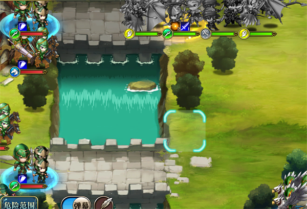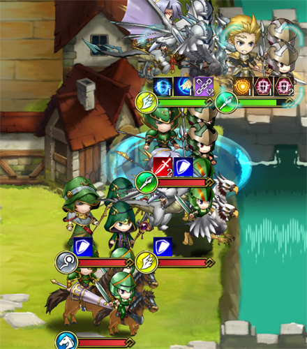 第二回合,艾美达与兰斯解决右侧两个飞兵,雪莉则利用被动特性连续击杀挡路的枪兵与骑兵,格尼尔跟上雪莉帮忙护卫接下来的伤害。