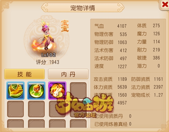 昨天和人去打剧情洗成全血的了,不要在意这些细节,没有敏捷补到千速千防4000还是很容易的。 有些同志会问高速宝宝不带隐身会不会很脆,其实可以考虑一只宝宝打隐身用来配速吃药。其他宝宝来承担伤害。至于宝宝速度太快还加耐会不会很脆,嘛,给你看看楼主的宝宝,防御和血还是过得去的吧