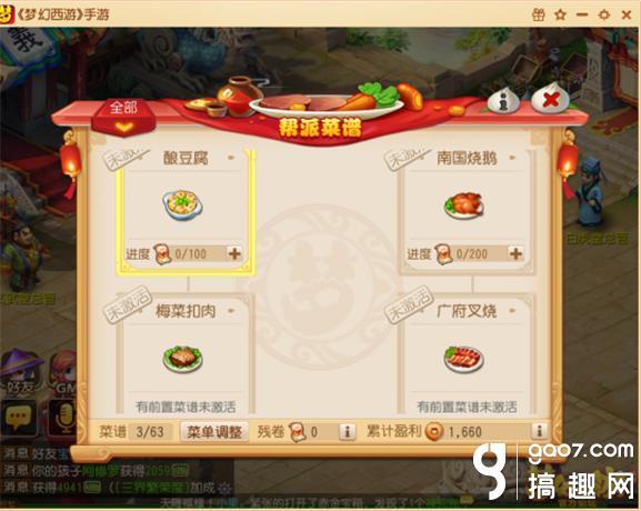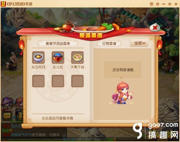 梦幻西游手游帮派美食节 菜谱的种类繁多,集了全国的各种特色菜品,可谓是琳琅满目
