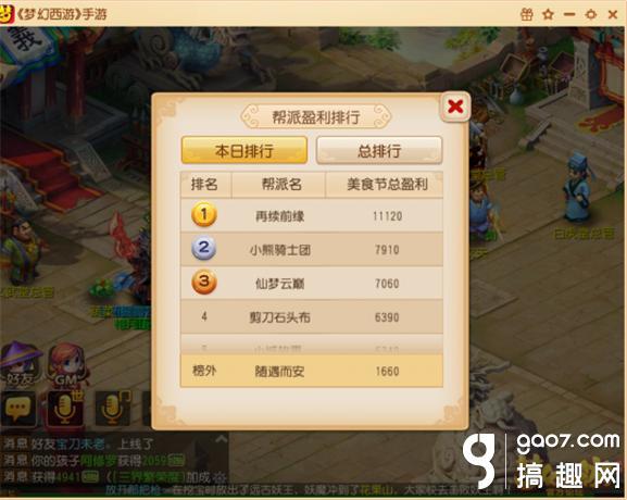 梦幻西游手游帮派美食节 在帮派美食节中,还会有实时的帮派盈利排名