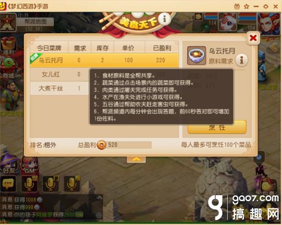 梦幻西游手游帮派美食节 我们可以及时点击食客看看他需要什么,没有的就给他做菜