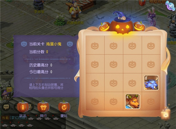 抓住调皮精:恶作剧大王等你挑战 “抓住调皮精”可谓是《梦幻西游》手游万圣节活动的经典玩法。在10月31日~11月2日活动期间,玩家可以在这一活动中,从挑战捣蛋小鬼开始,一路解锁调皮匠关卡、恶作剧大王关卡等三个不同难度的关卡。 在关卡中,玩家只要将活动界面朝上下左右四个方向滑动,将相同头像合并升级即可获得对应积分。若是能在恶作剧大王关卡中达到3000分,玩家更能在游戏结束后获得万圣节专属冒泡框一份!而在活动期间每日某个关卡排行榜进入前10的玩家,更能获得对应关卡称谓奖励和万圣节限时足迹一份,以彰显自己独特的活动技巧!