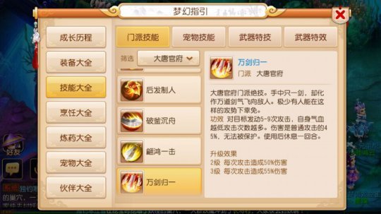 “2015年受期待的手游”《梦幻西游》手游一经上线,就受到无数玩家的热爱与追捧。《梦幻西游》手游并不是从端游的简单移植,而是一款全新制作的产品。在门派特色方面,《梦幻西游》手游目前精选了最具代表性的大唐官府、方寸山、龙宫、阴曹地府、普陀山和狮驼岭六大门派。六大门派,各显神通! 擅长点杀的大唐官府一直是梦幻的人气门派,这次在《梦幻西游》手游中更被赋予全新的塑造。横扫千军意气重,破釜沉舟慨而慷。天下兵法了于胸,十方无敌勇者狂。今天就为大家介绍大唐官府的门派技能。