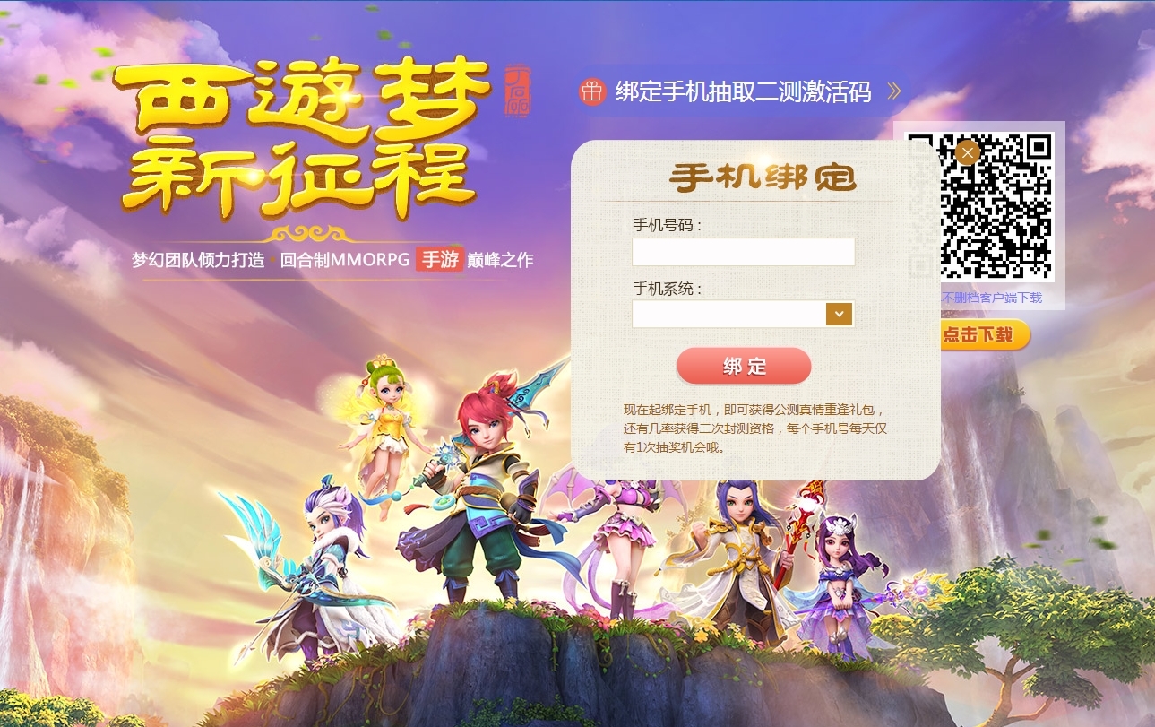 图1:《梦幻西游》官网抽取不删档测试资格 抽取不删档测试资格的规则如下: (1)填写手机号码和手机系统进行绑定,就有几率获得不删档测试激活码一枚。