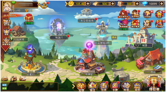 除了英雄养成,《梦幻甬城》还设有宝物养成、宝物招募、城堡建设、英雄招募等休闲玩法给玩家轻松时刻。同时,游戏也融入了天空竞技场、英雄战役、排位赛等热门玩法让玩家体验战斗带来的激情。 ![]()