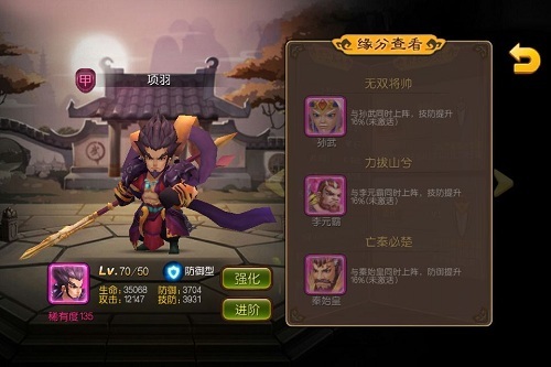 图3 《麻辣英雄》西楚霸王项羽 此外,各英雄的武器也十分强调细节,李元霸的双锤加金边配琅琊看起来就很沉,杨贵妃的舞扇颇有“飒如松起籁,飘似鹤翻空”的样子。而有些英雄的武器着实开了脑洞,幻想味十足,赵武灵王的武器居然是路灯样式,还有手持拔粪宝的小兵。相信率领这帮造型迥异,武器另类的英雄上阵作战,体验一定与众不同! 【有创新有亮点的玩法】 《麻辣英雄》战斗模式较独特——插入式的主角大招,要求玩家必须控制好主角技能释放时机。而上阵的英雄会自动攻击敌人,并通过能量蓄满自动发动技能,因此在战斗中不能全依靠英雄队友的实力,玩家才是掌控战场胜负的关键。