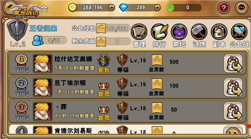 人与人之间总有着奇妙的联系,热血激斗3D攻城手游《魔龙战记》同样是一个小型的社会,玩家之间存在着互利和竞争的关系。游戏的公会系统就聚集着各路志同道合的冒险者,不畏强大的邪恶魔力携手共进。你今天的公会任务做了吗?![]() 当玩家等级达到16级,就可以随意的加入或创建公会。如果你本身具备强大的领导能力,那么你可以自己创建一个公会,号召好友们加入一同抗战,自己建立公会需要消耗500钻。如果你想抱大腿,那么可以在该系统中自由选择公会加入。 ![]() 罗马不可能一天建成,《魔龙战记》中的公会同样需要时间来打造,公会祭坛等级的提升需要会员们消耗金币或钻石。你还可以用获得的公会硬币去捐献,获得公会buff让战斗更有利,而个人公会贡献点数可以用来购买公会商品。 ![]() 如果你是一个肝帝,做完日常任务总是百无聊赖,那么《魔龙战记》的公会活动肯定让你爽不停。当公会等级达到10级即可开启公会副本,每天可进行3次。更有公会试炼的10个关卡任你闯,晚上还有公会约战时刻,快来发挥你的管理才能建造一个和谐友爱的公会,带领大家击溃强大的公会Boss吧。 |