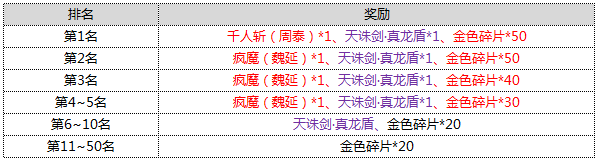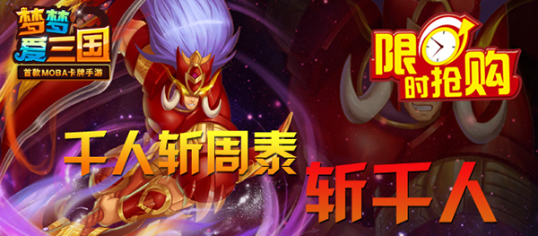 作为吴国最新强力金卡,千人斩属性自不必说,不但防高血厚能嘲讽,一身装扮也简直是狂炫酷拽的不要不要的,四个技能一个比一个变态,无论是pk还是刷图,都是超级好用~既然遇到了这个狂炫酷拽的男人,必须得来一发! 【千人斩技能解析】 狂战血魄:使敌方全体受到额外8%的伤害(就是这么不讲道理的无论法系、物理输出统统加!); 战斗嘲讽:释放后增加自身巨量护甲(别打我队友,别打我脸,其他随便打~); 回旋斩:受击时有几率对前排造成大量伤害(对不起,被打了这转的就是停不下来); 霸王无双斩:对敌方生命最少的单位造成巨量伤害(斩尽一切,连神龙都斩过,子龙哥哥当然也不例外!) 那么现在问题来了!如何获得这个斩尽一切的男人呢?咳咳,下面请看前线一手资料发回的报道~ 【限时抢购:千人斩斩千人!】 活动形式:活动期间会开启限时神将抽取,最后根据玩家抽将总数进行排名,给予丰厚奖励! 活动时间:5月8日00:00-5月10日24:00 活动范围:5月7日之前所开服务器(AppStore除外) 活动奖励: