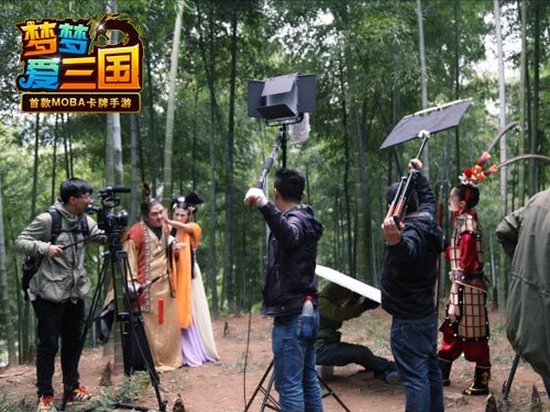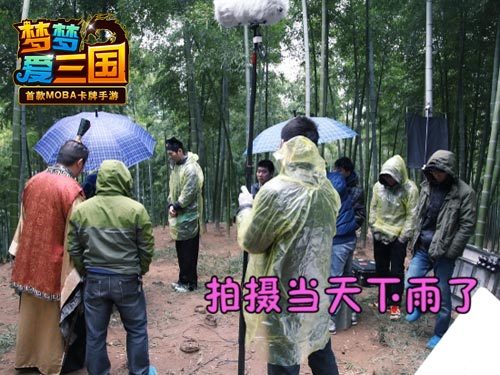 冒雨拍摄,制作组辛苦了 【获市场认可拍摄微电影】 《梦梦爱三国》上线之后热度持续高涨,已经取得了AppStore付费榜第一、国内重量级游戏榜单年度最佳卡牌游戏等诸多荣誉。取得良好的市场成绩之后,杭州电魂又宣布正式加盟微电影行业,已经斥巨资、邀请经验丰富的专业制作团队拍摄《梦梦爱三国》同名微电影。