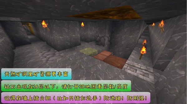 记得多准备一些火把,然后养成在固定方向插火把的习惯(比如始终只插在右手边,那么回家的路就是火把在左边),哪怕你的矿道修的像矮人的地下王国,也不怕迷路啦!!!