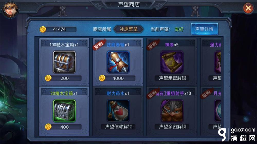 不同的阵营代表着不同的势力队伍,玩家在一个章节中只能选择其中一个声望阵营,因为不同的阵营之间是互克的、此消彼长的关系。 刷声望,等级越高奖励越多 声望任务应该是在10级左右出现第一次引导,多刷声望任务也是可以获得不少经验和奖励的,随着声望值得增加,还可以到声望商店购买各种各样的宝箱、卷轴等商品。 随着我们不断完成声望任务,自己的声望值将不断增加,从低到高共分为冷漠、友好、信赖、亲密、崇拜五个等级,等级越高也将有机会在声望商店购买兑换更多物品。