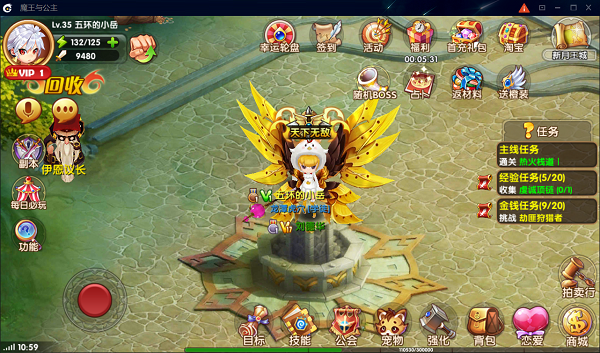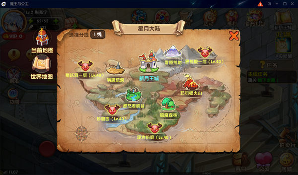 《魔王与公主》的画面主打欧美Q萌风格,不仅人物都是可爱的大眼萌,跟随在身后的宠物也是软萌软萌的一只。本作在视觉效果上做了很多优化,3D的角色建模和2D的场景搭建,兼具惊艳的画面展现和流畅的运行效果。