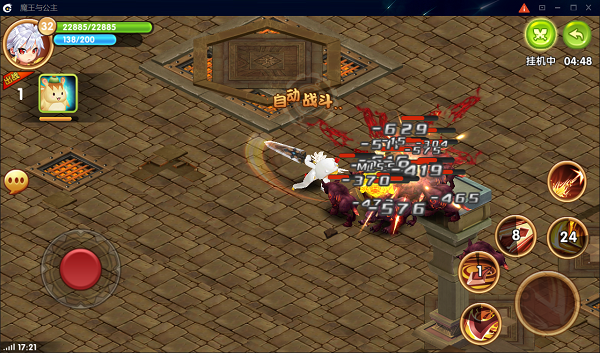 战斗模式方面,《魔王与公主》采用了摇杆操控+按钮释放技能的操作模式,副本战斗强调玩家的走位操作,战士、法师和暗影三种职业都拥有移动性技能,合理使用移动性技能既可以躲开BOSS的大招,还能造成反击。