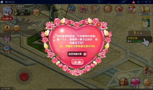 《魔王与公主》是由好悦游戏研发、金刚游戏发行的西方魔幻ARPG手游,游戏再现了王子拯救公主的经典剧情,剧情由起点白金作者宅猪亲自执笔。同时为了防止玩家的审美疲劳,本作增加了诸多的日常活动,和丰富的成长线,包括结婚系统、双人坐骑、专属时装等,为玩家之间营造了相当强的互动氛围。