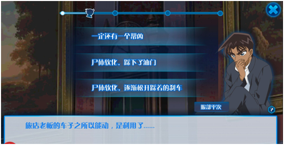 评分:★★★★ 二、游戏音乐 1、背景音乐 第一次进入游戏时,紧张刺激的剧场版视频配合经典的开场音乐瞬间让身为柯南侦探迷的我激动了起来。游戏中的虽然使用了不少原著中的经典背景音乐,但是更让人吃惊的是各个场景中的原创音乐。时而隐秘,时而惊险的背景音乐让玩家在游戏的同时耳朵也能获得很好的享受,代入感十足。 2、配音音效 十分遗憾的是在游戏中拥有单独配音的只有柯南主角本身。其他角色均使用的是同一音效。而且,战斗副本中的攻击特效,只能说是中规中矩,传统的枪械、刀剑声,比较单调。相比背景音乐,音效方面稍显逊色了。 评分:★★★☆ 三、游戏操作 1、操作性 相比传统的挂机回合卡牌,《名侦探柯南-纯黑的噩梦》则侧重的是如何进行排兵布阵,由于作为一款挂机游戏,在战斗中基本上不会进行任何操作。游戏的战斗模式以及风格还是比较偏向于轻松简单的轻度玩家的。 2、打击感 个人感觉《名侦探柯南-纯黑的噩梦》的打击感一般,可能是游戏更侧重微操和策略方面。伙伴的天赋攻击,柯南的主动技能均未见让我难忘的精彩镜头。偶尔出现的死神秒杀技能倒是让我小小的惊喜了下。 评分:★★★☆ 【特色系统评测】 1、破案系统 游戏中最亮眼的系统莫过于新推出的破案系统了。在侦探作品中最刺激最吸引你的地方是什么呢?没错就是依据蛛丝马迹逐步进行推理,一步步的找到隐藏在幕后的真正凶手。破案系统正是因此而存在。在游戏中每张地图都有守关BOSS,每次成功击败BOSS后会累计一定量的侦探值。当侦探值达到100%时就可以进行对该场景的破案了。在严格的对话中我们需要根据当时的场景以及线索选择出正确的答案。当连续推理正确3次时我们便可成功破案找出凶手。值得欣慰的是,游戏中所有的破案推理均出自于原著剧情。所以对原著熟悉的小伙伴肯定可以轻松过关,顺便可以再次回味下当初看动漫时的紧张刺激。 ![]()
