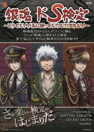 本次企划全名叫做“银魂抖S检定~关于那些无所谓的事情总是忘不掉~”,而在企划的宣传图上,我们看到了神威、银时以及总悟的形象。应该说确实充满了S的感觉。尤其是银时那一脸坏笑的模样,我们也很久没在原作当中看到了。
