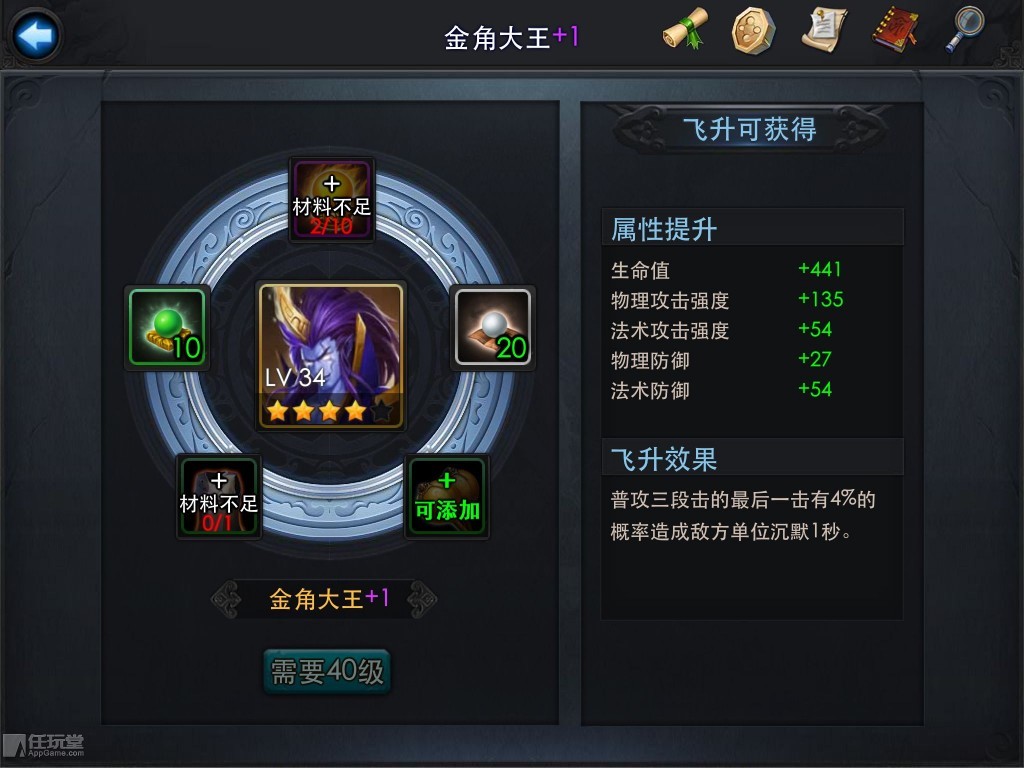 忘记介绍金角的飞升效果了:普攻三段击的最后一击有2%的概率造成地方单位沉默1秒。飞2时是4%的概率沉默1秒。