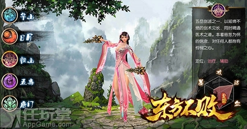 游戏有五大职业,包括善于近战防御型的华山派战士、精通近战敏捷型的日月派刺客、长于远程敏捷型的唐门派射手、擅长远程输出的五毒派法师以及承担治疗输出型的恒山派牧师。通过不同职业的相互配合,每一种职业都能在团队对抗中有效地发挥出自己的长处,有效地弥补了因为职业特点不同而带来的自身短板,让团队合作不再只是一句空谈。