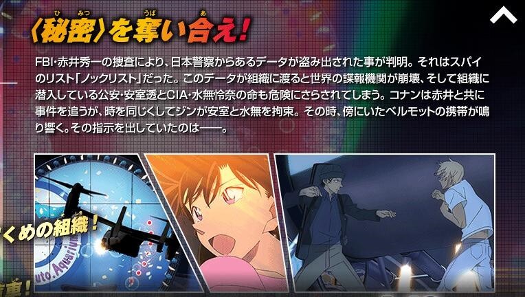 《名侦探柯南:纯黑的恶梦》作为《名侦探柯南》系列的第20个周年剧场版上映;在该次剧场版里将会上演四大阵营的巅峰对决,并且还会出现一位知晓卧底在组织内部的成员名单;并且还有关乎全世界情报组织的重要资料被盗走。